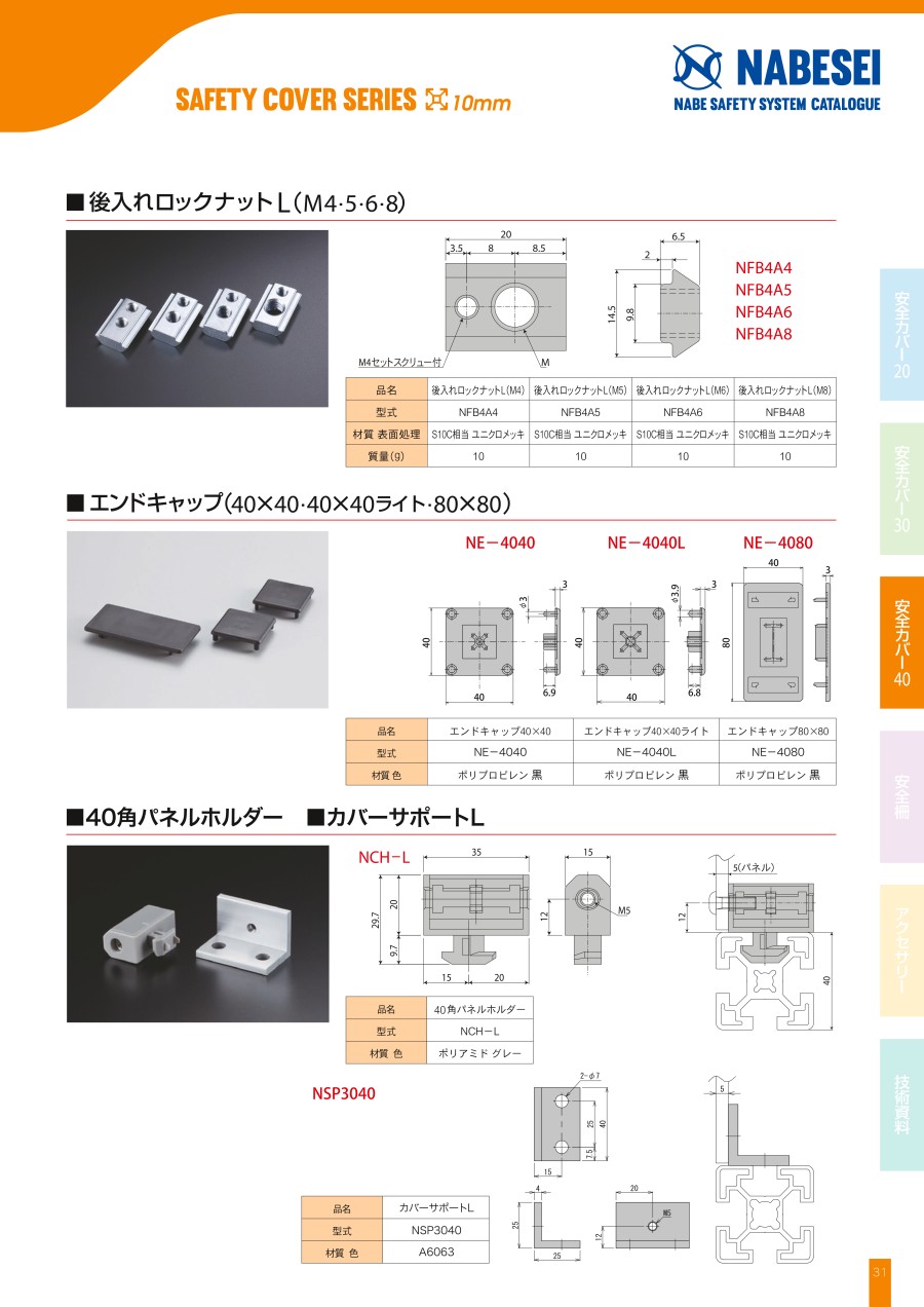 アルミフレーム 8シリーズ 正方形 40×40mm 1列溝 4面溝