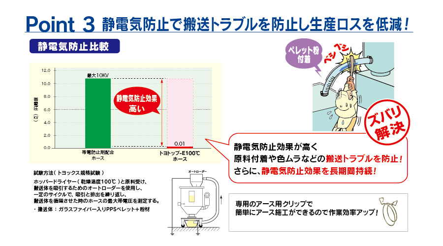 食品用帯電防止ホースをお探しの方は「トヨフーズアース」をご確認ください。