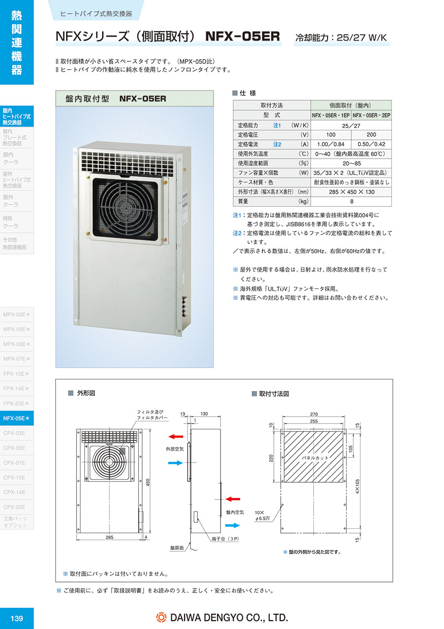 注1:定格能力は盤用熱関連器工業会技術資料第004号に基づき測定し、JISB8616を準用し表示しています。