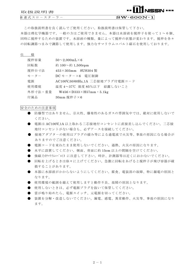 ・撹拌容量:0.05~2L×6