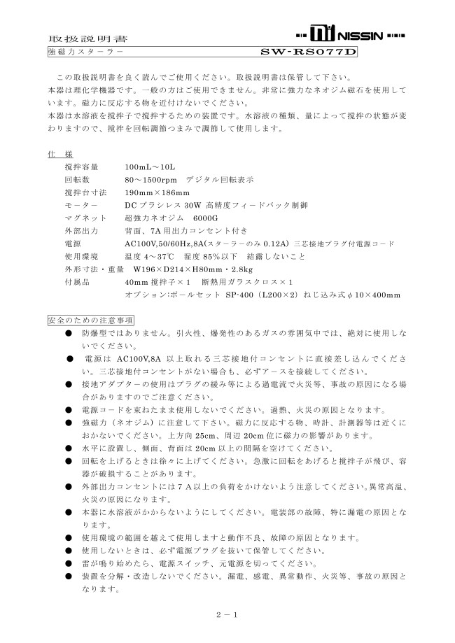 【特長】・強磁力6000Gと上方向への磁力線カバーの撹拌機構と、背の低い高粘度撹拌スターラーが登場しました・デジタル式