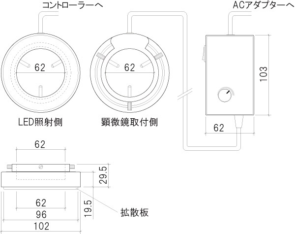 ・LEDの玉が投影され観察像に影響しないよう拡散板も標準装備し、十分に明るく違和感のない観察像が得られます。